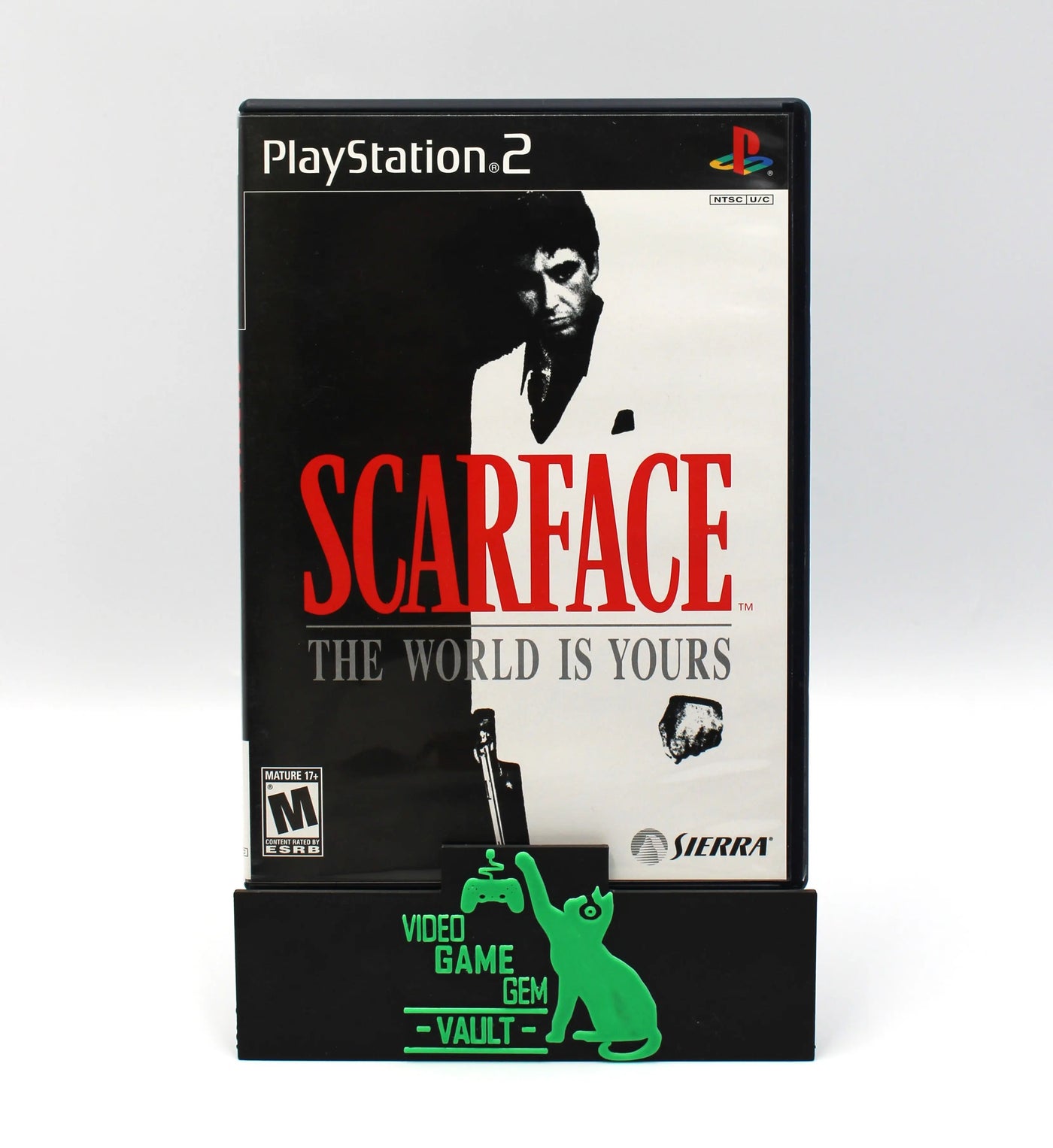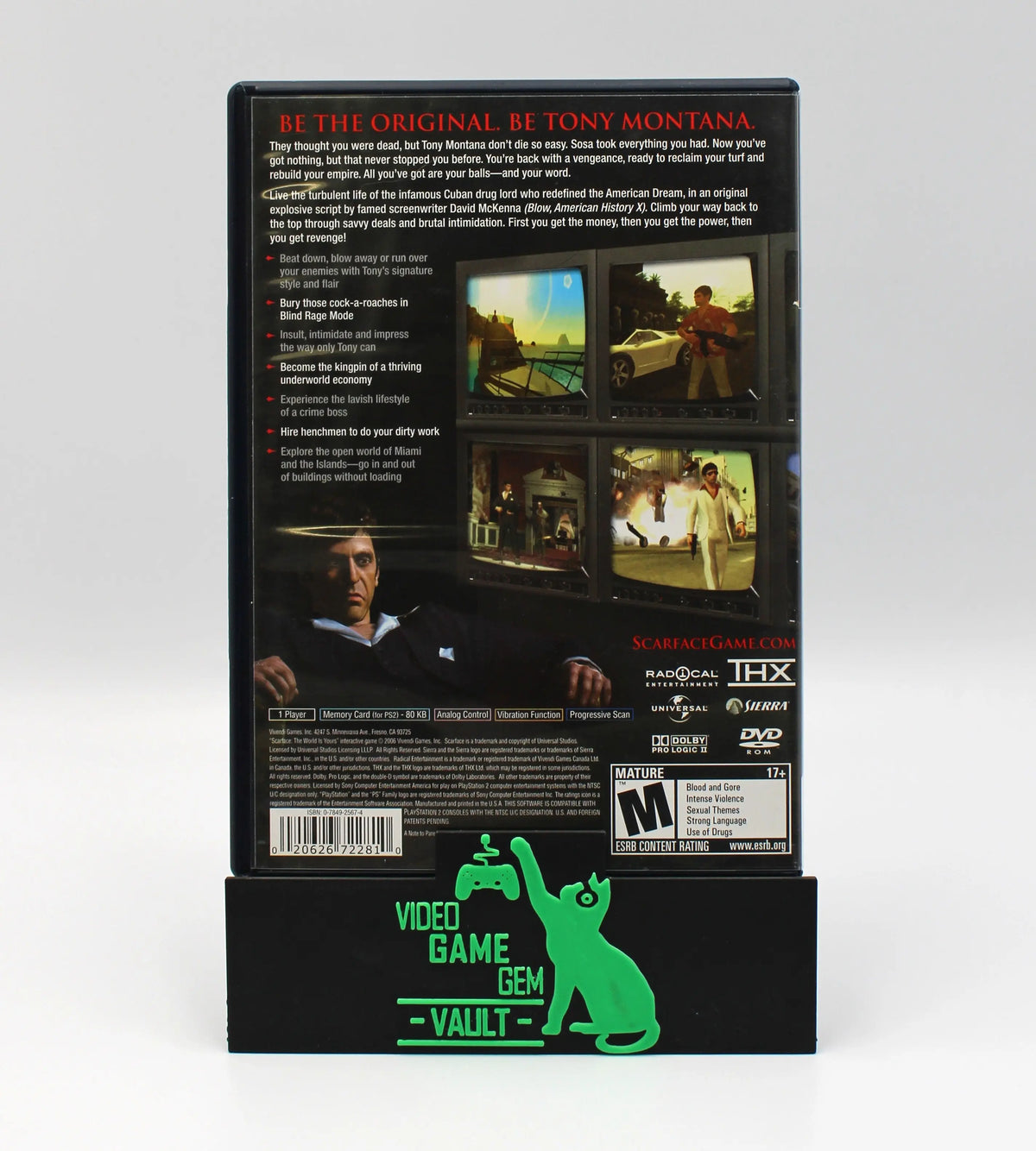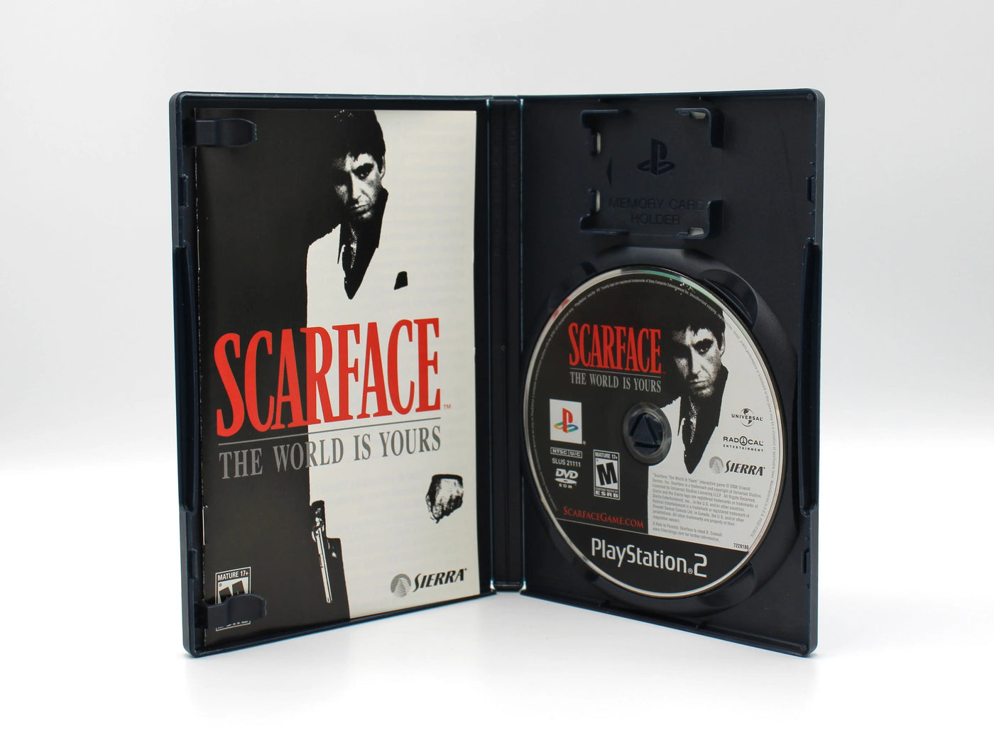 Scarface: The World Is Yours on the Sony PS2 is an open-world action-adventure game that puts players in the shoes of Tony Montana, reimagining an alternate ending where he survives the infamous mansion shootout. The gameplay revolves around rebuilding Tony’s drug empire across Miami.